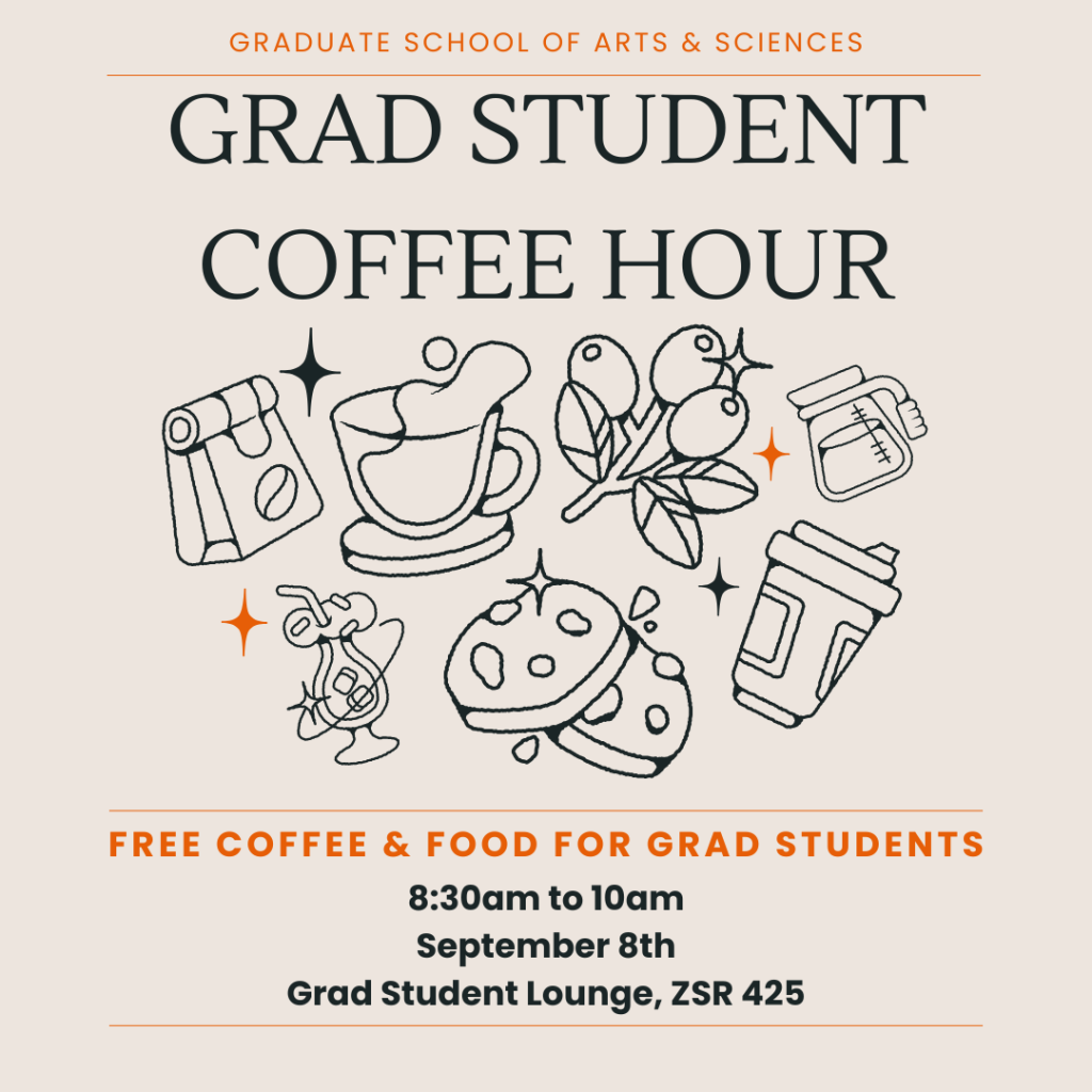 September 8th @ 8:30am to 10am, Grad Student Lounge, ZSR 425. Calling all graduate students! Take a break and grab some FREE coffee and treats in the Graduate Student Lounge, courtesy of GSAS and ZSR Library. Hang out and chat with other graduate students, or grab and go on the way to class.