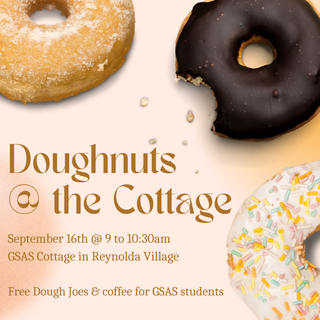 October 16th @ 9am to 10:30am, GSAS Cottage, Reynolda Village. Enjoy FREE Dough Joe’s doughnuts and coffee! Stop by the Graduate School of Arts & Sciences cottage in Reynolda Village to enjoy some treats, check out the space, and say hello to Senior Associate Dean Marsh and GSAS staff. See you there!