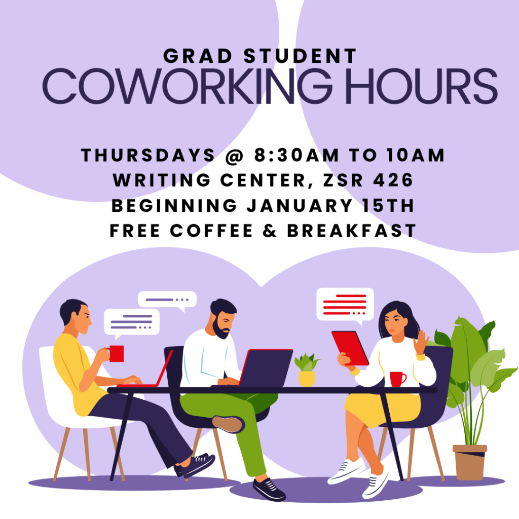 March 5th, 19th, & 16th @ 8:30am to 10am, Writing Center, ZSR 426. Coworking Hours are here all semester long! You bring whatever it is you need to get done, and we’ll bring the free Bagel Station. Stay for a while or stop by on your way to class. Please note that Coworking Hours will NOT be hosted the week of Spring break.